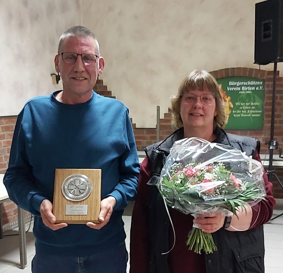 Bei unserer Jahreshauptversammlung am 26.03.2022 im Schützenhaus Birten konnten wir unseren Schießmeister Heiner Engeln mit einer ganz besonderen Plakette überraschen. Heiner ist in diesem Jahr 25 Jahre der Schießmeister der St. Viktor Bruderschaft Birten 1310 e.V.. Wir bedanken uns von Herzen bei Heiner und seiner Frau Petra für ihre langjährige Arbeit.