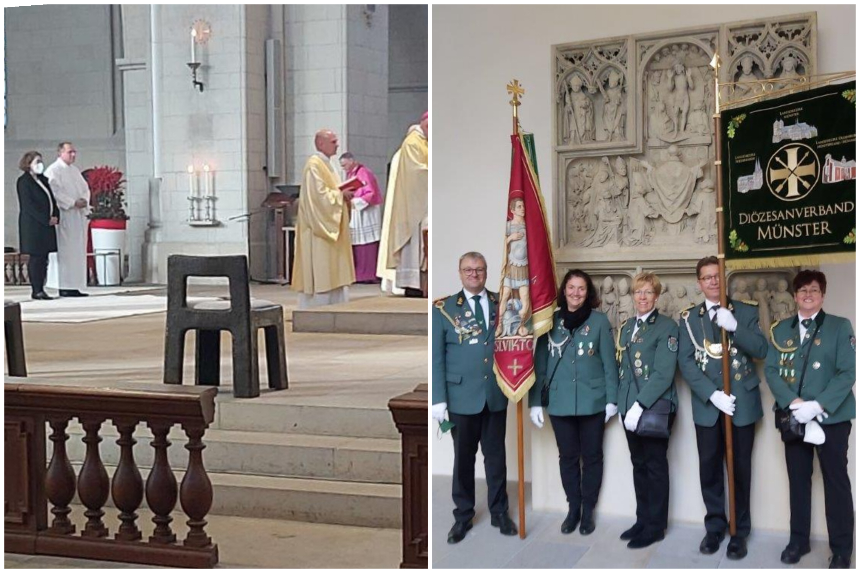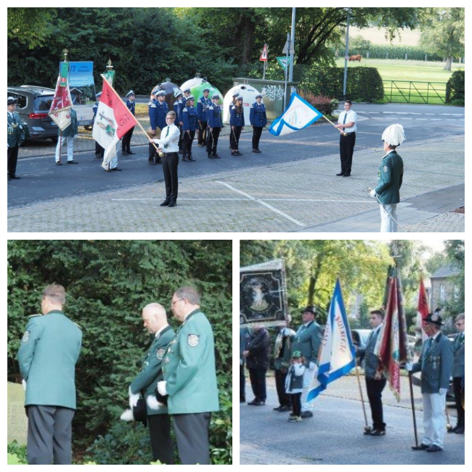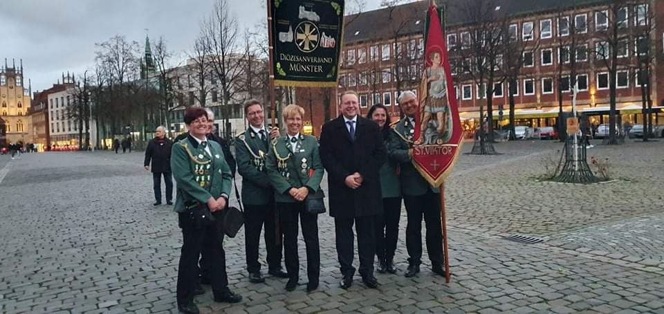 Am Freitag 27.08.2021 traf sich eine Abordnung der St. Viktor Bruderschaft, das Bundesschützen -und Landestambourkorps und auch Dompropst Stefan Notz, um am Ehrenmal den Kranz für die Verstorbenen niederzulegen. Der Brudermeister gedachte in seiner Ansprache den Kriegsgefallenen und den verstorbenen Schützenschwestern und –brüdern. Er erinnerte an die Vorfahren, die das Vereinsleben geprägt haben. Auch sprach er die Tradition an, sie sollte bewahrt, aber nicht festgehalten sondern auf heute angepasst werden. Propst Notz erwähnte, dass es wichtig sei, auch wenn Schützenfeste ausfallen, die Verstorbenen gerade in dieser Zeit, nicht zu vergessen und bat alle Anwesenden das „Vater unser“ zu beten. Anschließend schwenkten Jan Bergmann und Felix Hügen in wunderbarem Einklang die Fahnen. Es war ein würdevolles und emotionales Gedenken.